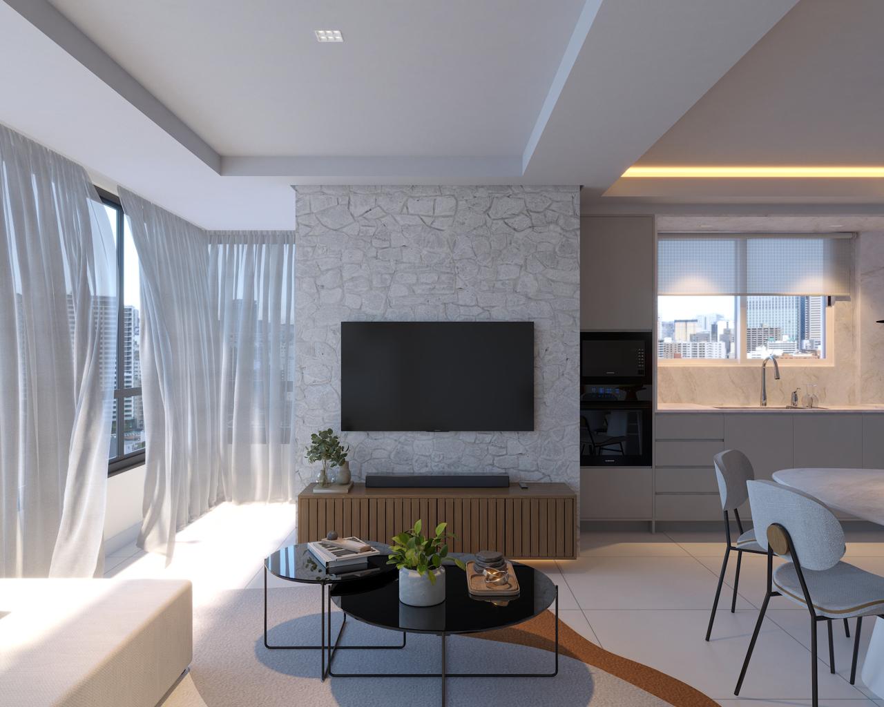 Apartamentos com área privativa entre 80 m² até 105 m², com excelente distribuição e ótimo padrão de acabamento.