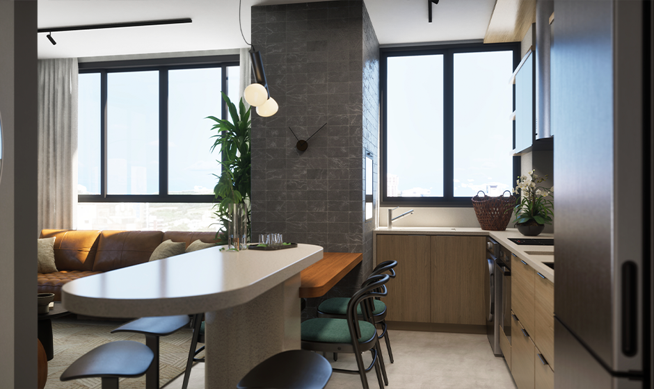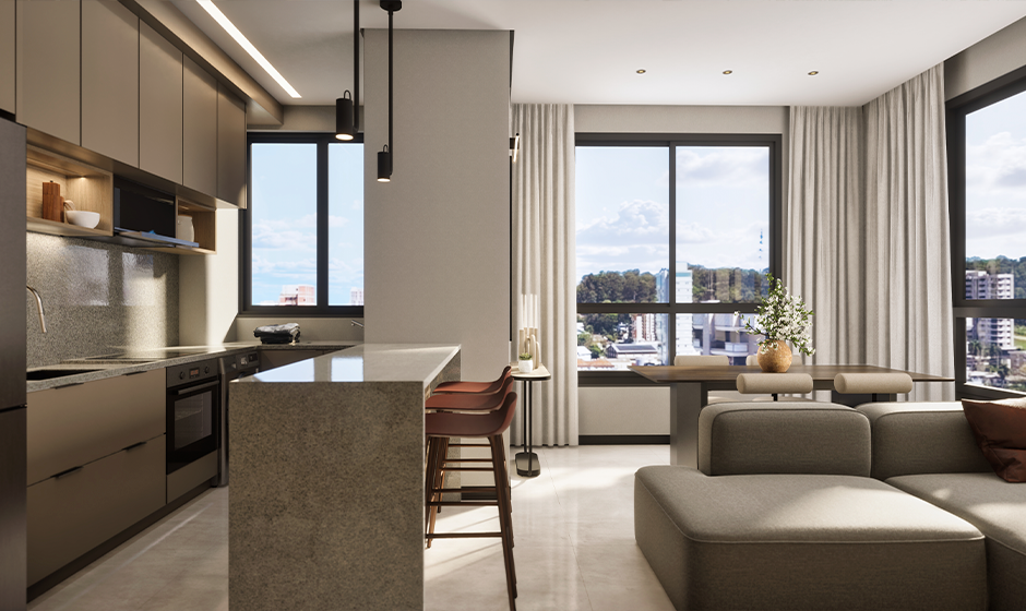 ✅ Sala de estar e jantar integradas;