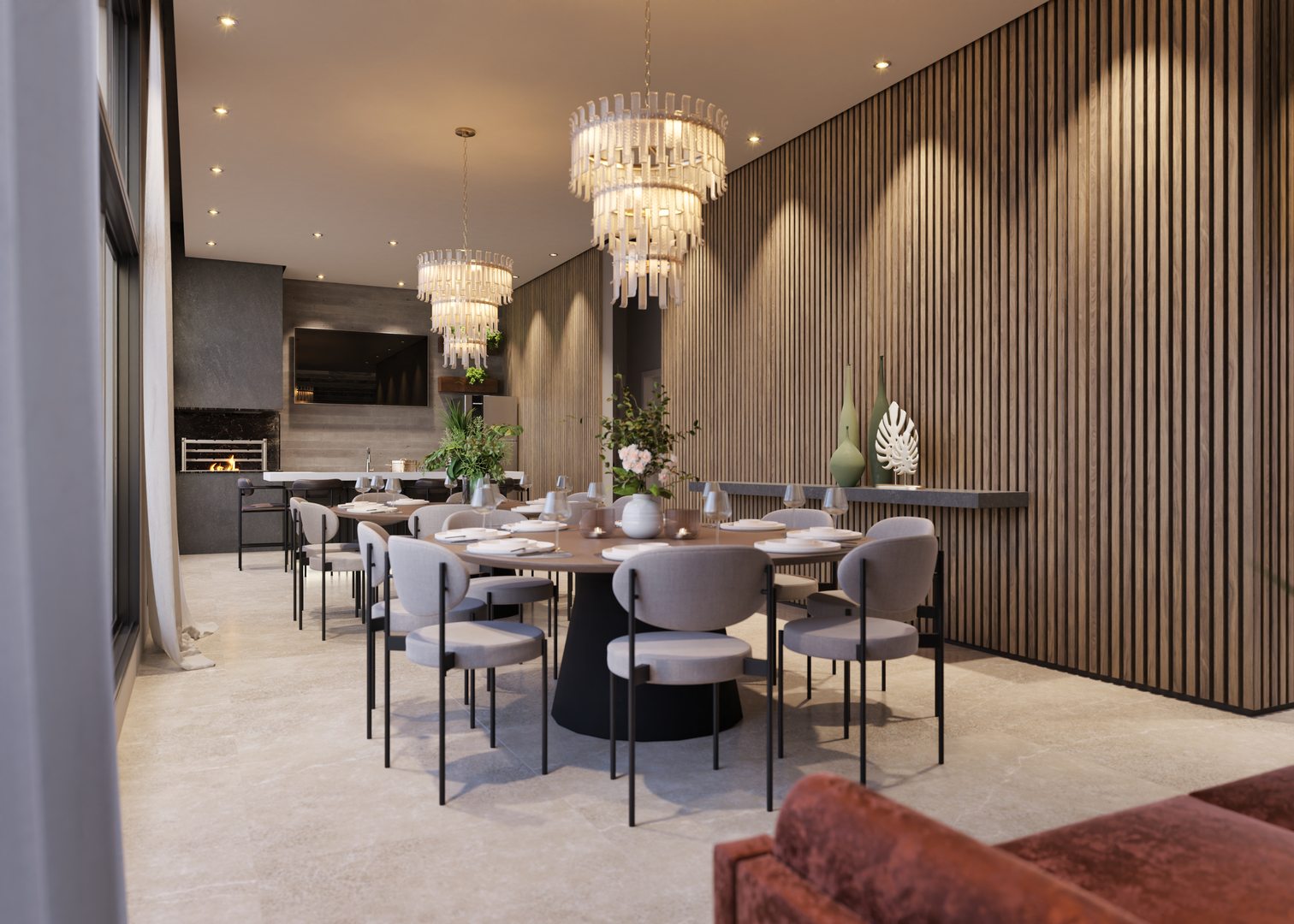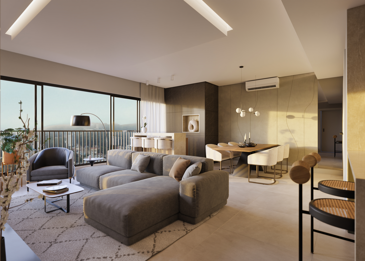✅ Ampla sala de estar e jantar integradas;