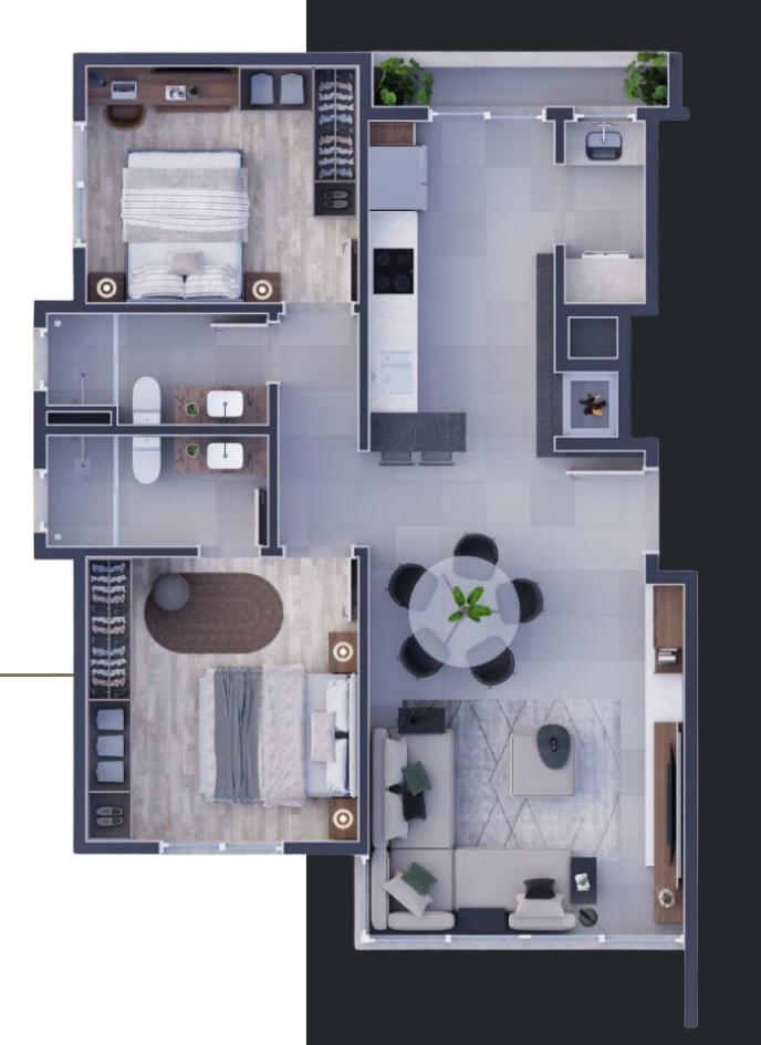 Apartamentos com área privativa entre 97,59 m² até 203,10 m².